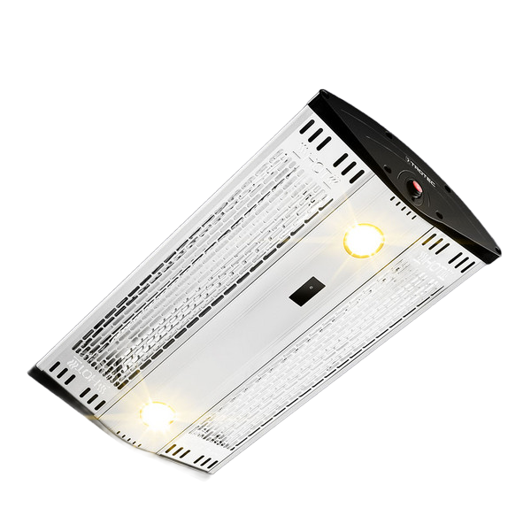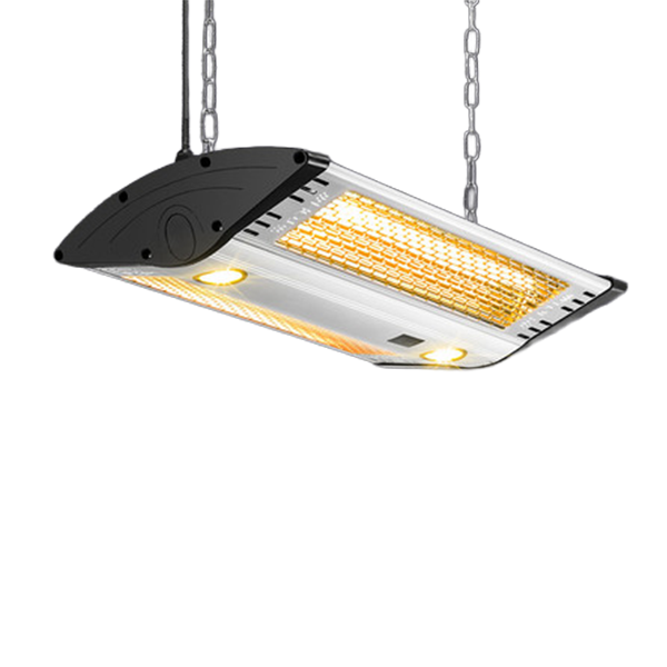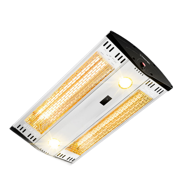 Riscaldatore a infrarossi in alluminio di alta qualità da 2.000 Watt con spot LED integrati, telecomando e protezione dalle intemperie.