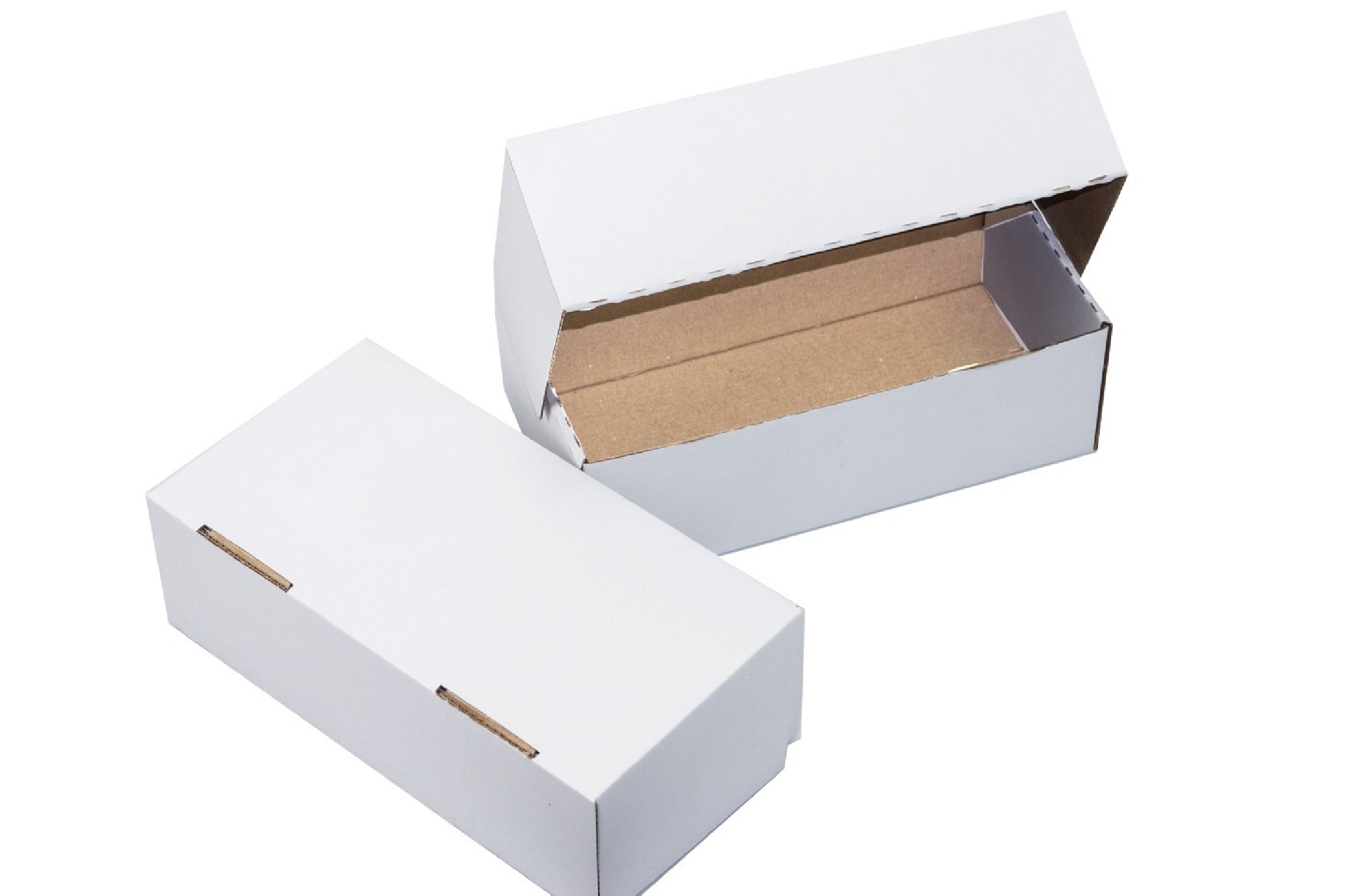 Scatola di cartone fustellata con base e coperchio, colore base bianca realizzate in micro onda.