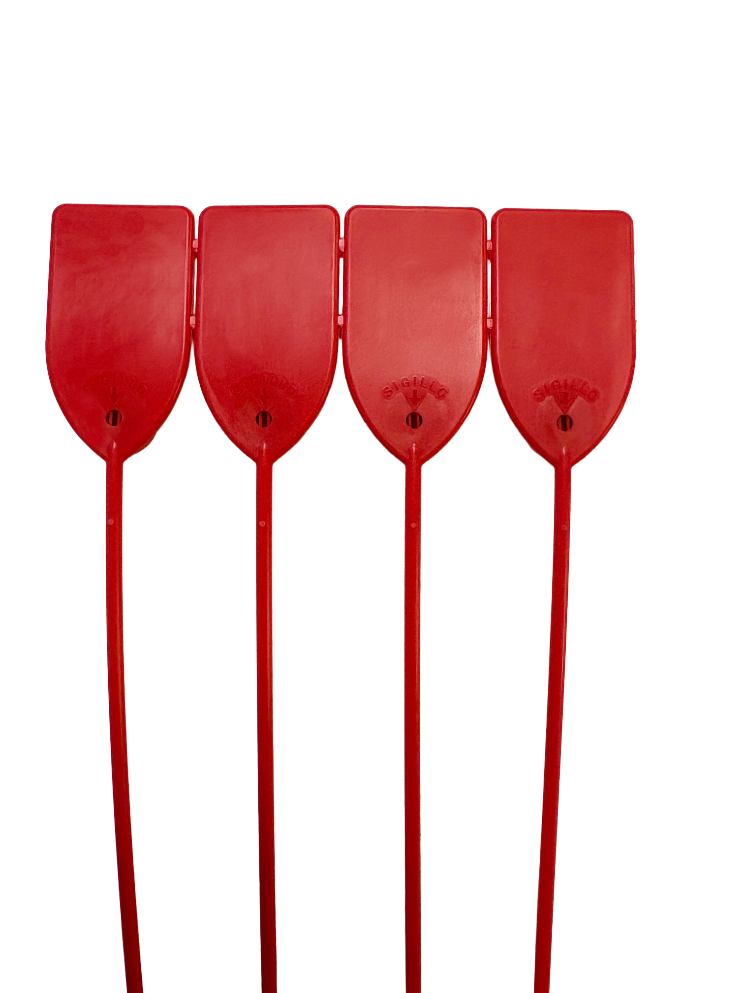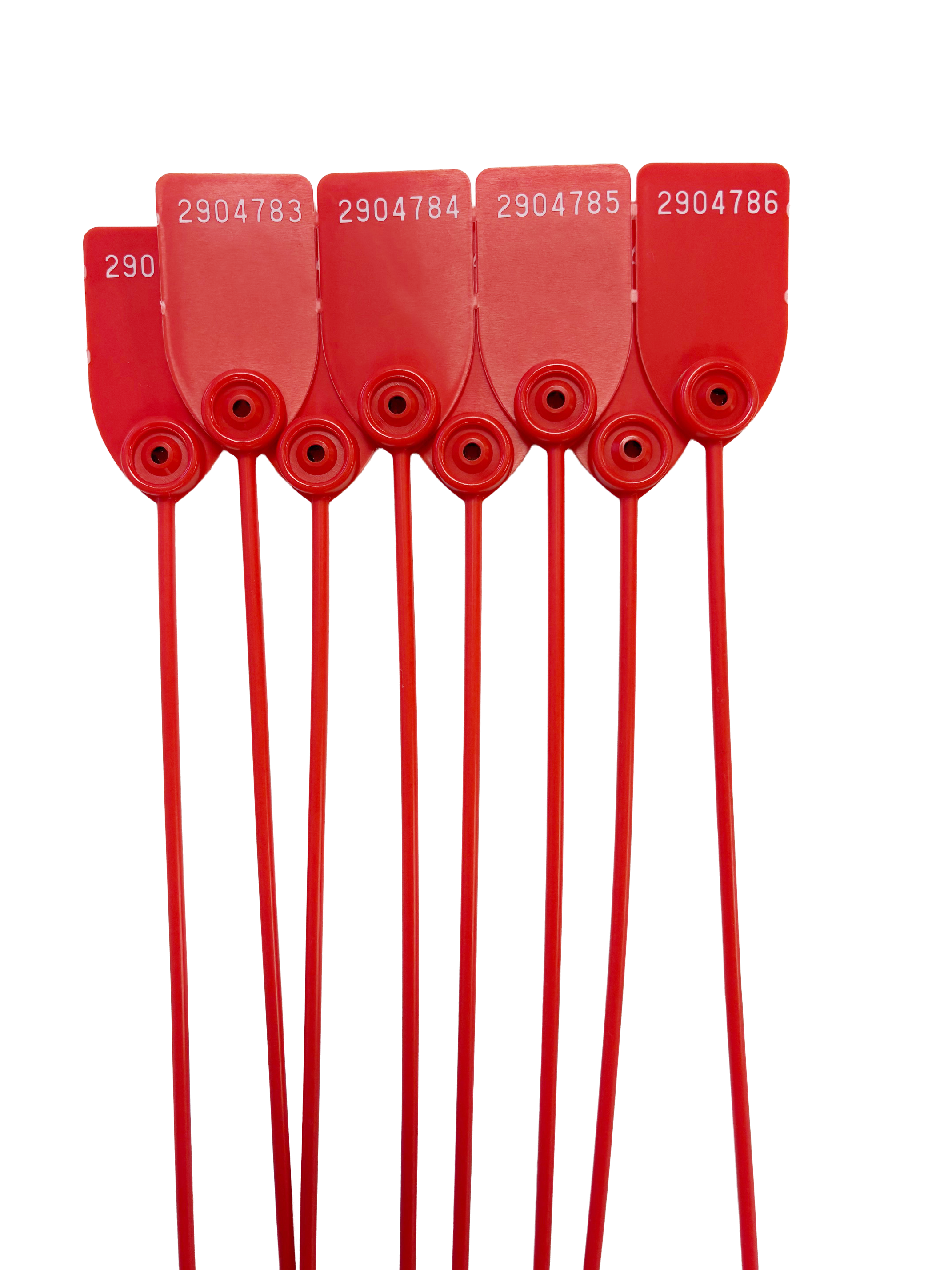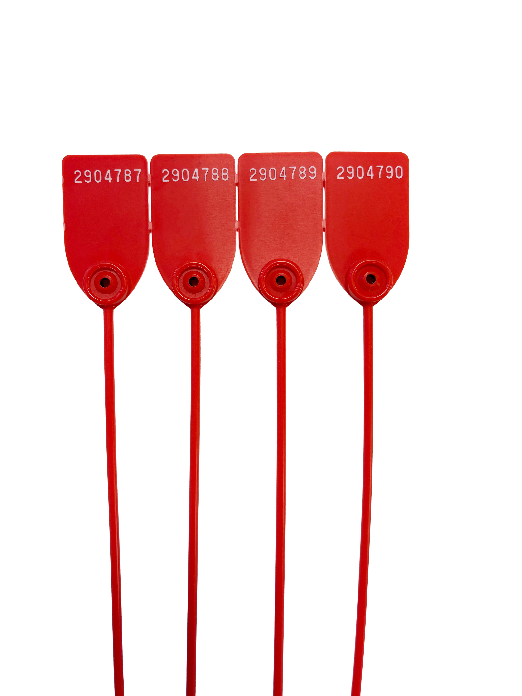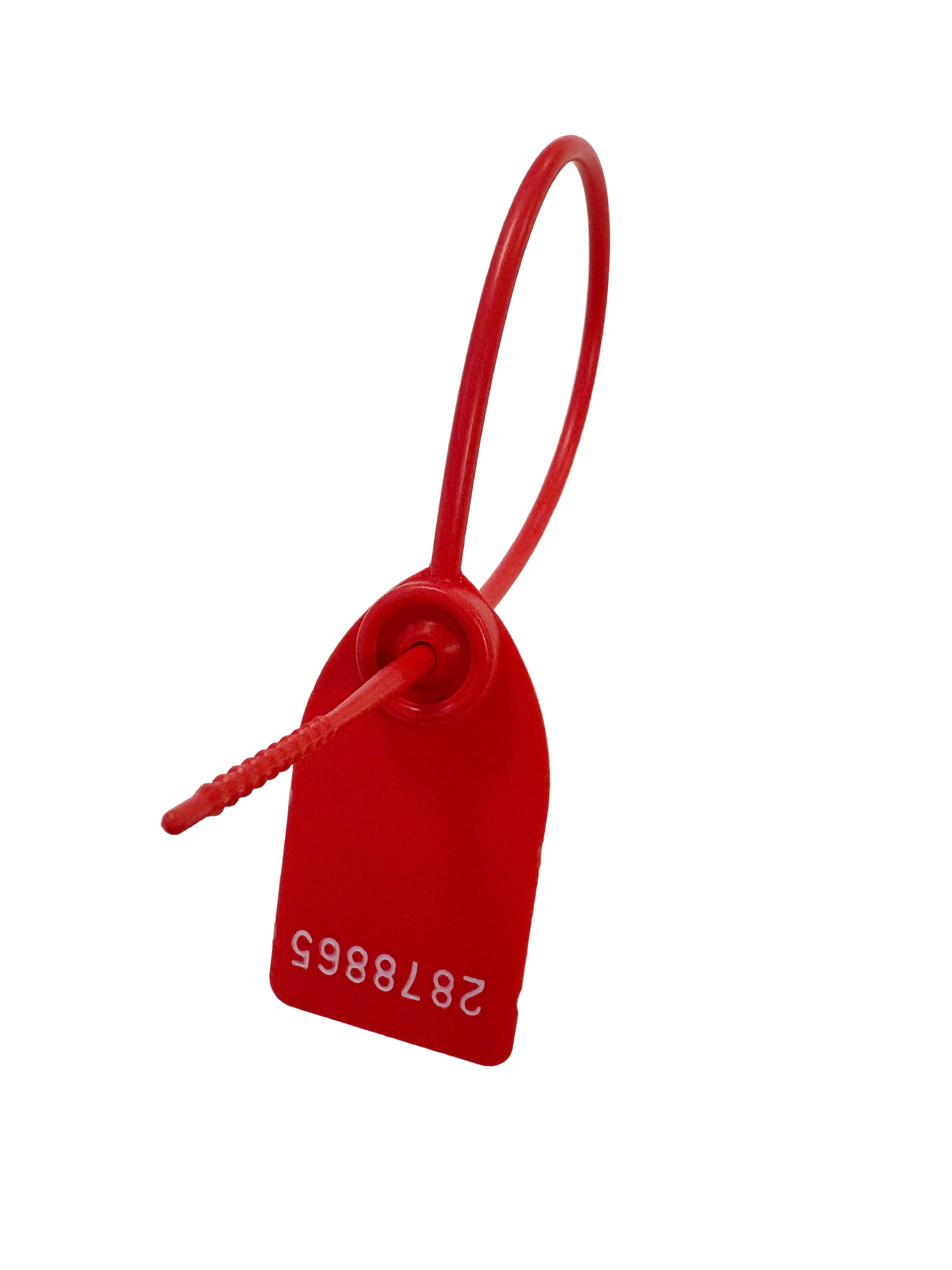 Sigillo modello “PP SEAL” in plastica a scorrimento liscio, inserto in acciaio, capsula di bloccaggio trasparente per visualizzazione manomissioni.